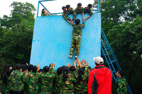時間。大家一致推選營銷副總擔任總司令,并制定出在1個小時內完成的目標。項目是要求每位成員都要翻越4米多高的光滑墻面,且不能